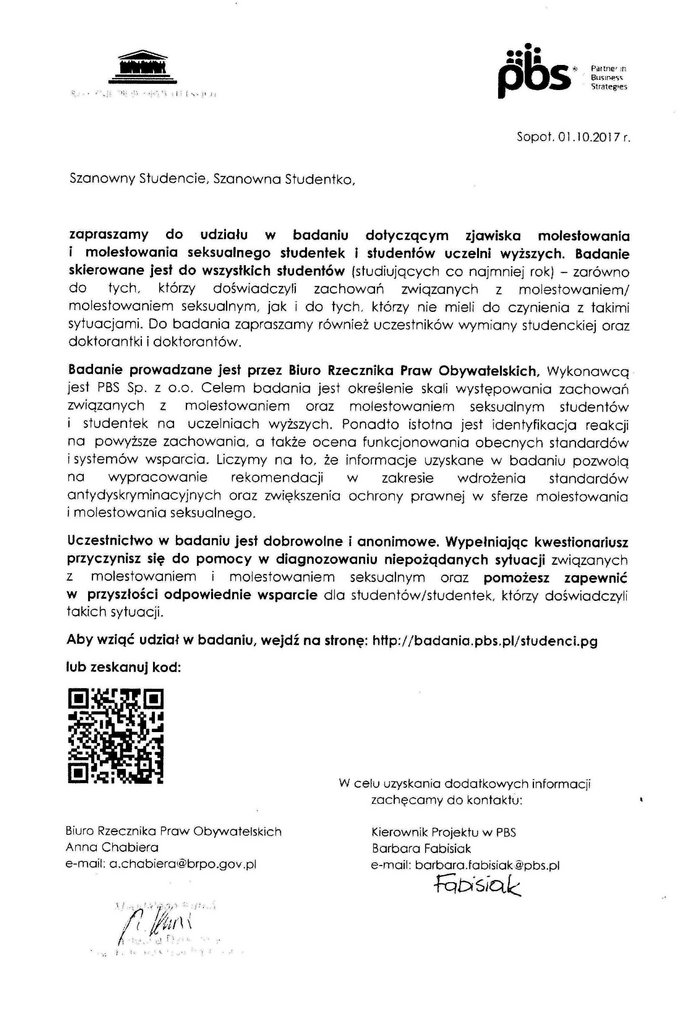 Na prośbę Rzecznika Praw Obywatelskich informujemy o możliwości udziału w badaniu "Zjawisko molestowania i molestowania seksualnego studentek i studentów uczelni wyższych", którego celem jest…