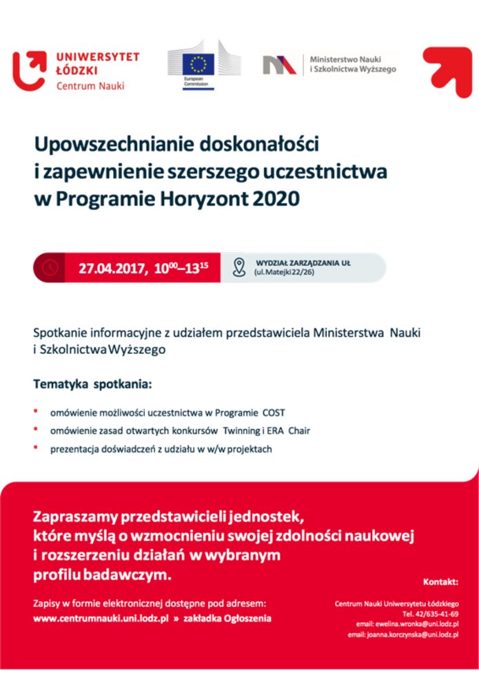 Zapraszamy wszystkich zainteresowanych, poszukujących możliwości uczestnictwa w Programie Horyzont 2020 na spotkanie informacyjne. Horyzont 2020 jest największym w historii Unii programem ramowym w…