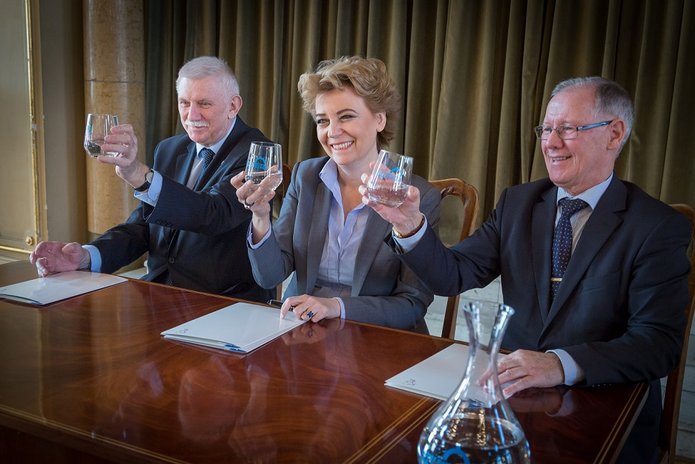 Hanna Zdanowska, Prezydent Miasta Łodzi i prof. Antoni Różalski, Rektor Uniwersytetu Łódzkiego podpisali list intencyjny w sprawie współpracy przy realizacji projektów w zakresie "Systemu odwodnienia…