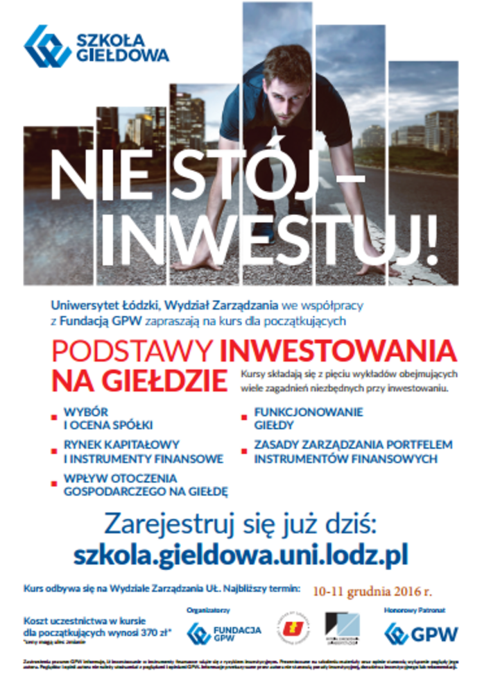 Giełda Papierów Wartościowych w Warszawie oraz Wydział Zarządzania UŁ zapraszają do udziału w kursie "Podstawy inwestowania na giełdzie".