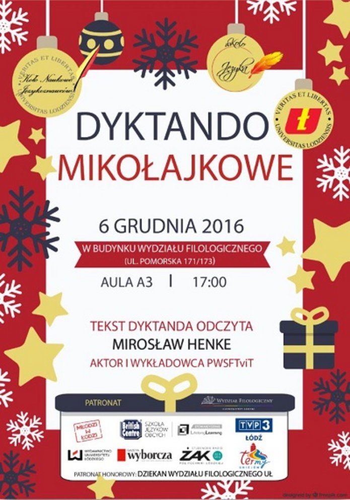 Czas: 6 grudnia 2016 r., godz. 17:00Miejsce:Wydział Filologiczny, aula A3