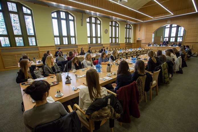 Podczas spotkania ze starostami pierwszy lat przedstawił zagadnienia związane ze studiowaniem, ale również zapoznał się z oczekiwaniami i potrzebami studentów.