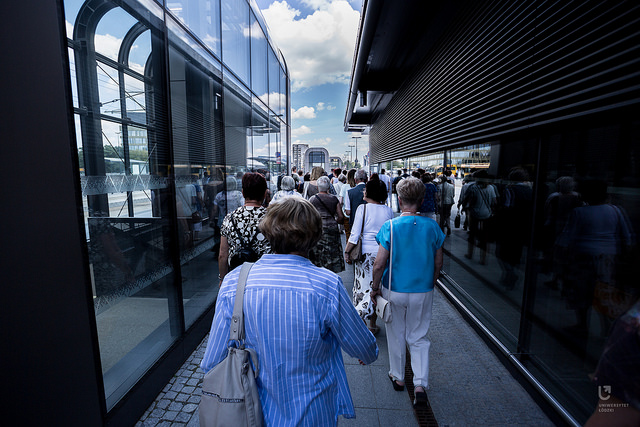 Na Placu Dąbrowskiego zwiedzających czekała opowieść o gmachach Teatru Wielkiego i Sądu Okręgowego, ale także o niezrealizowanych projektach architektonicznych w tym rejonie. Później grupa przeszła do budynku Textilimpexu przy ul. Traugutta gdzie z tarasu widokowego na XV piętrze doskonale można zobaczyć teren Nowego Centrum Łodzi - miejsca które już w latach 20. XX wieku miało się stać sercem miasta. Archi-spacer z UŁ zakończył się przed budynkiem Dworca Fabrycznego.
