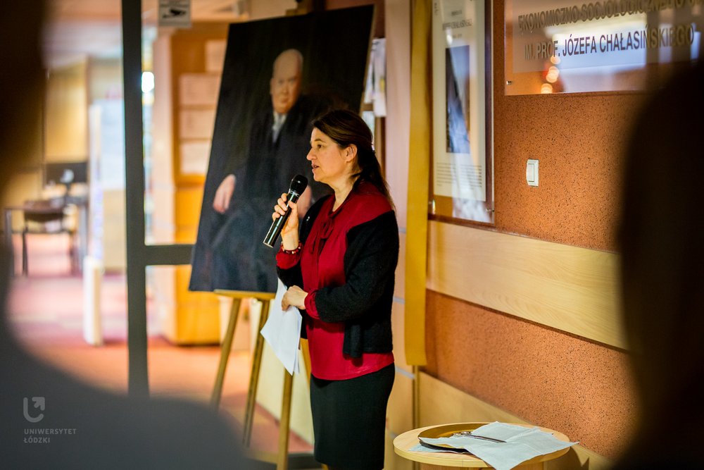 Dyrektor Instytutu Socjologii UŁ, prof. Kaja Kaźmierska przywitała gości, m.in. wśród zebranych były obecne dzieci prof. Chałasińskiego - prof. Katarzyna Chałasińska-Macuków oraz prof. Grzegorz Chałasiński.