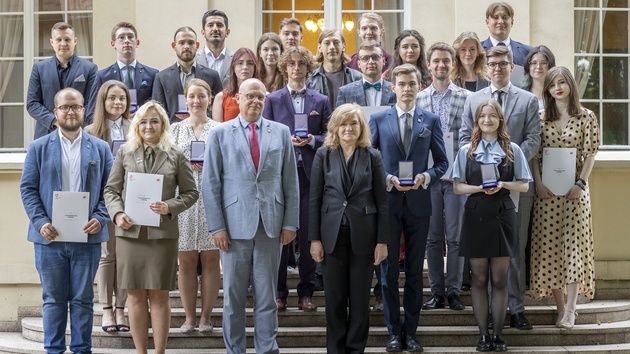 Po uroczystym wręczeniu wszystkich medali i dyplomów, laureaci zaproszeni zostali do zrobienia pamiątkowych zdjęć z władzami Uniwersytetu Łódzkiego.