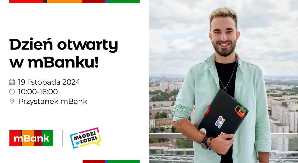 Aby wziąć udział w wydarzeniu zaloguj się i zarejestruj korzystając z formularza aplikacji na tej stronie: https://mlodziwlodzi.pl/dzien-otwarty-mbank/