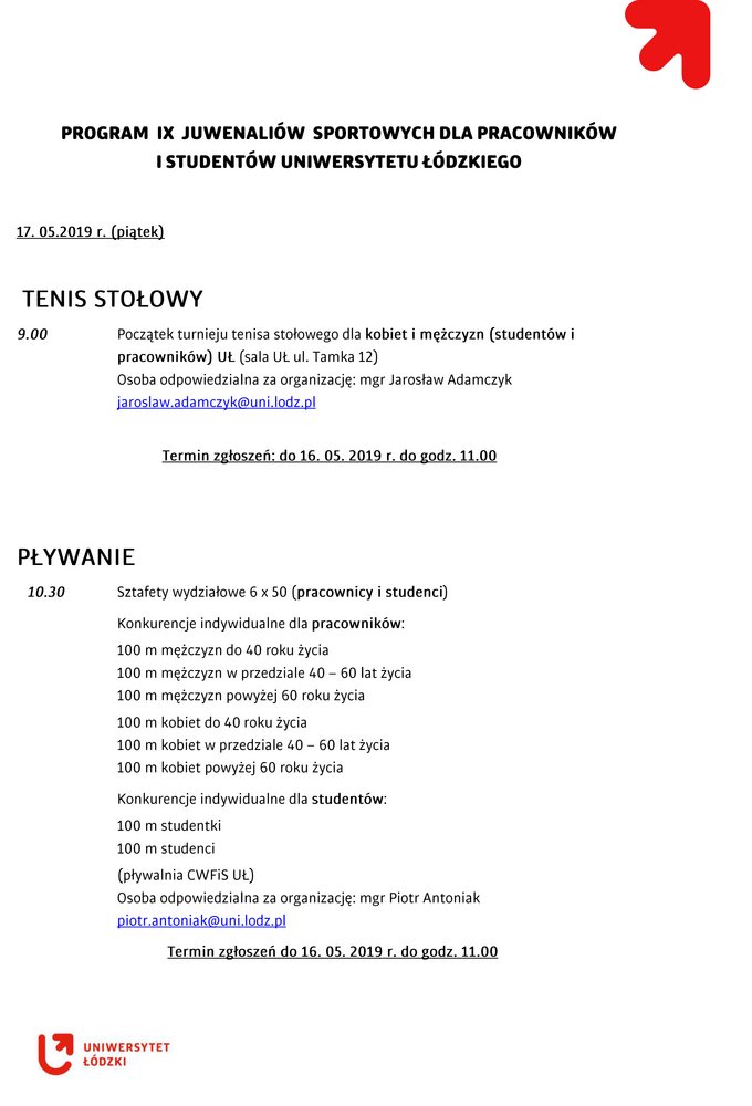 PROGRAM IX JUWENALIÓW SPORTOWYCH DLA PRACOWNIKÓW I-2