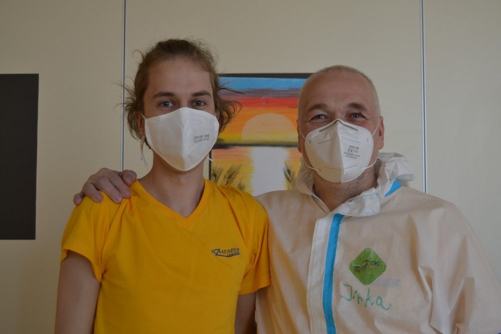 Konieczna jest ciągła dezynfekcja i odzież ochronna. W takim ubraniu wykonywana jest cała praca przy seniorach. Dr Byčkov przebiera ich, karmi, goli, ścieli łóżka, odprowadza na rehabilitację i rozwozi posiłki.