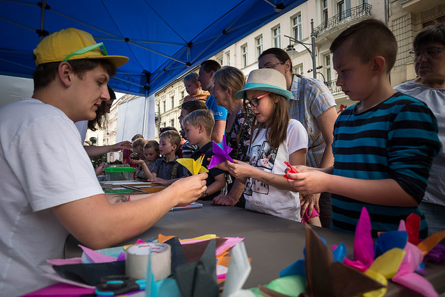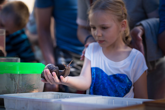 Bakcyla ciekawości zaszczepili studenci z Sekcji Zoologii Bezkręgowców Naukowego Koła Biologów. Dzieci miały okazje zobaczyć hodowle tych mniej i bardziej nietypowych zwierzątek - ślimaków, modliszek i karaczanów. Najodważniejsi mogli wziąć je na ręce i zrobić sobie pamiątkowe zdjęcie. Chętni nauczyli się jak składać motyle z origami, a ci najbardziej dociekliwi zostali tropicielami wodnych bezkręgowców.