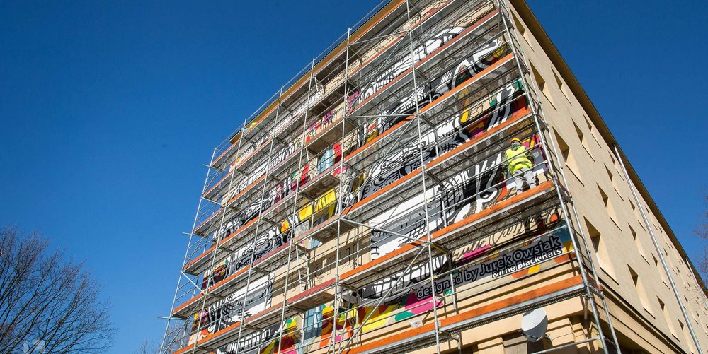 Dzięki współpracy z Uniwersytetem Łódzkim, dzisiaj możemy podziwiać mural zaprojektowany przez samego Jurka Owsiaka na jednym z Domów Studenta UŁ.