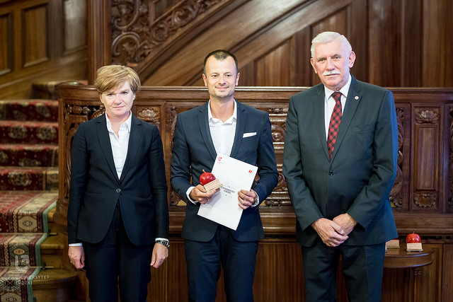 Podczas spotkania w Pałacu Biedermanna wręczono również trzy kolejne tytułu Absolwent VIP i ich symbole - czerwone jabłka. Do grona wybitnych przedstawicieli Uczelni dołączyli: Żaneta Leduchowska - Head of EMEIA Finance Services Fujitsu Polska, Łukasz Koprowski - dyrektor PWC Polska Oddział w Łodzi oraz Krzysztof Turowski - dziennikarz telewizyjny, radiowy i prasowy. Wyróżnienia wręczyli Rektor Uniwersytetu Łódzkiego prof. Antoni Różalski i Prorektor ds. naukowych prof. Elżbieta Żądzińska.