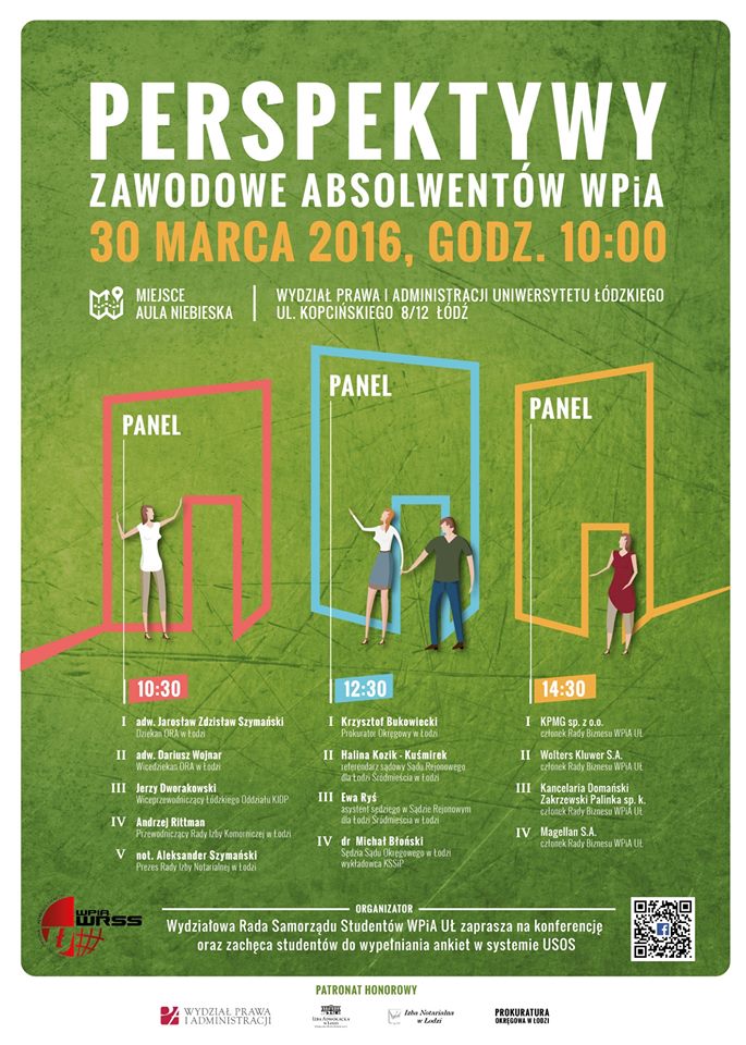 Konferencja stwarza możliwość, by studenci dowiedzieli się istotnych szczegółów na temat zawodów prawniczych, egzaminów na aplikację czy egzaminów zawodowych oraz umożliwia szersze spojrzenie na możliwości zawodowe, jakie daje wykształcenie zdobyte na WPiA. Honorowy patronat nad wydarzeniem objęli: : Dziekan Wydziału Prawa i Administracji Uniwersytetu Łódzkiego - dr hab. Agnieszka Liszewska, prof. UŁ Izba Adwokacka w Łodzi Izba Notarialna w Łodzi Prokuratura Okręgowa w Łodzi