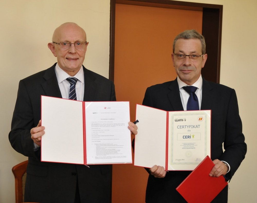 Umowę podpisywali: Pan Miguel Angel Rodriguez Alvarez - Prezes Zarządu firmy CERI International oraz Prof. dr hab. Ryszard Pawlak, Dziekan Wydziału Matematyki i Informatyki Uniwersytetu Łódzkiego.