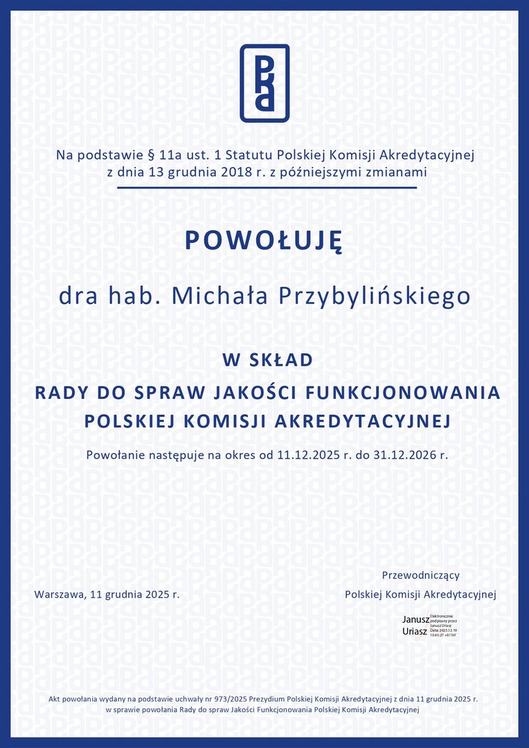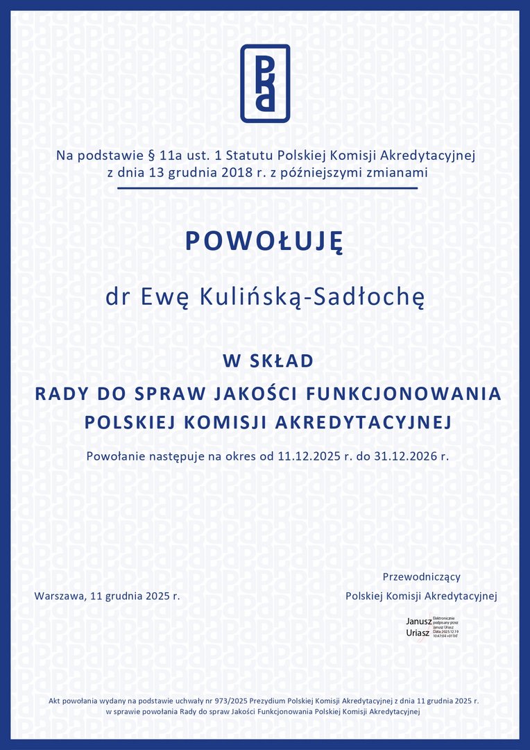 Powołanie przedstawicieli EkSoc UŁ do Rady ds. jakości funkcjonowania Polskiej Komisji Akredytacyjnej