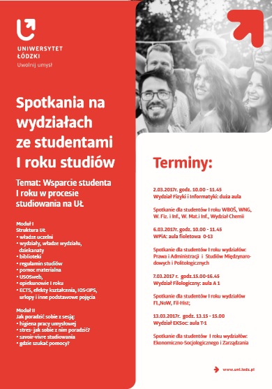 Uczestnicy będą mogli uzyskać wiedzę na temat struktury i działalności Uniwersytetu Łódzkiego oraz efektywnego studiowania. Szczegóły programu spotkań znajdują się na plakacie. Terminy również TUTAJ.