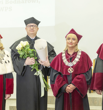 Po odczytaniu i wręczeniu dyplomu doktoratu honoris causa dr hab. Adamowi Bodnarowi, prof. Uniwersytetu SWPS, laureat nie krył wzruszenia, dziękując za przyznanie tego najwyższego zaszczytu, jakim naukowca może obdarzyć wspólnota akademicka. Wyraził też wdzięczność prof. Krzysztofowi Skotnickiemu za inicjatywę, podjęcie trudu i przeprowadzenie całego procesu. Podziękował też za laudację, podczas słuchania której, jak stwierdził, nie poznawał samego siebie. Recenzentom podziękował za wspaniałą ocenę swojego dorobku.