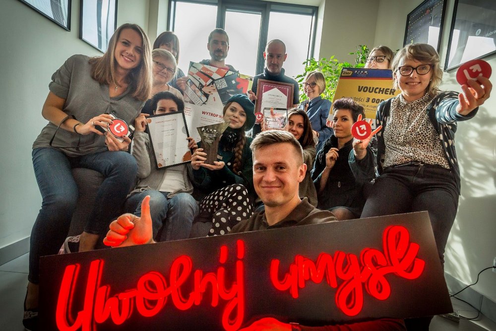 "Poprzez grę WYTROP NAS w kreatywny sposób promujemy media społecznościowe uczelni, przedstawiamy ciekawe przestrzenie UŁ. Jednocześnie uczelnia popularyzuje rozwiązania zero waste - ponieważ nagrodą w akcji są designerskie torby lub pokrowce na laptopa, stworzone z nieaktualnych banerów uniwersyteckich." - mówi dyrektor Centrum Promocji UŁ Anna Rolczak, która odebrała nagrody.