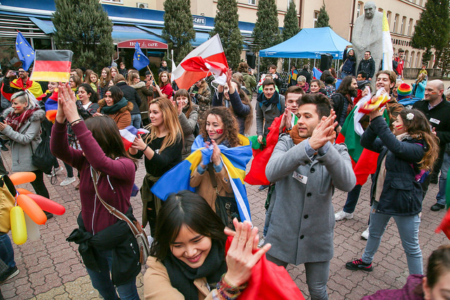 Wielobarwny, radosny pochód przeszedł ulicą Piotrkowską. Uczestniczyli w nim zagraniczni studenci Uniwersytetu Łódzkiego, niosąc flagi swoich państw. Marsz kilkuset osób (uczniów szkół łódzkich, studentów, mieszkańców Łodzi a nawet przedszkolaków) przeszedł z Placu Wolności do Pasażu Shillera, gdzie wszyscy odtańczyli flash mobe przy rytmach dynamicznej muzyki.