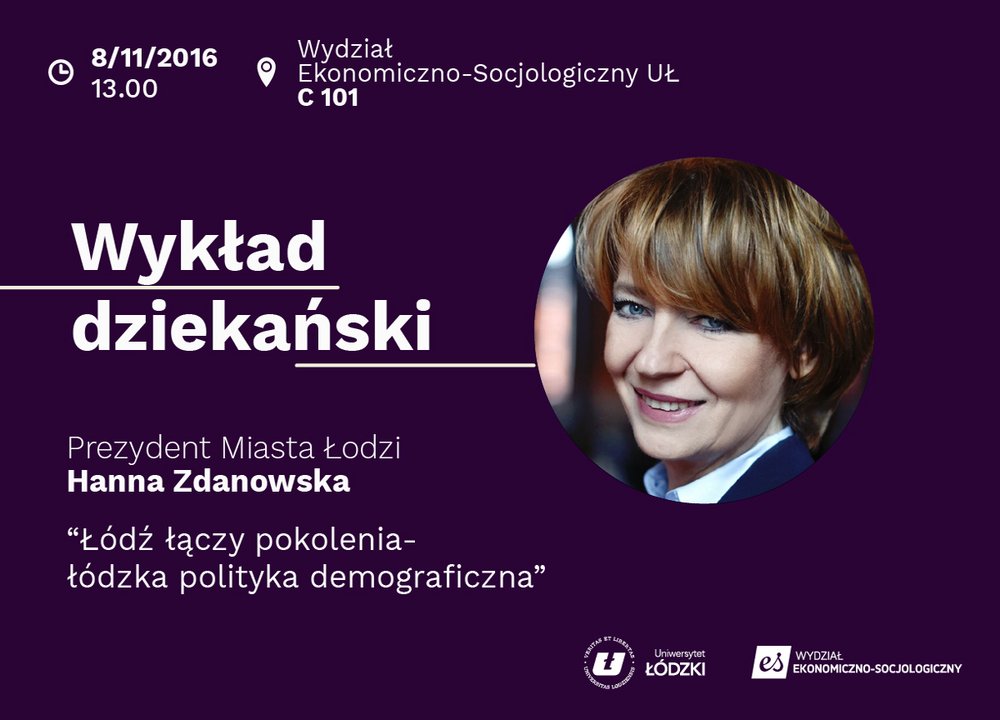 W imieniu dra hab. Rafała Matery, prof. UŁ, Dziekana Wydziału Ekonomiczno-Socjologicznego UŁ serdecznie zapraszamy wszystkich studentów, pracowników oraz uczestników Akademii Activus na wykład Pani Hanny Zdanowskiej, Prezydent Miasta Łodzi.