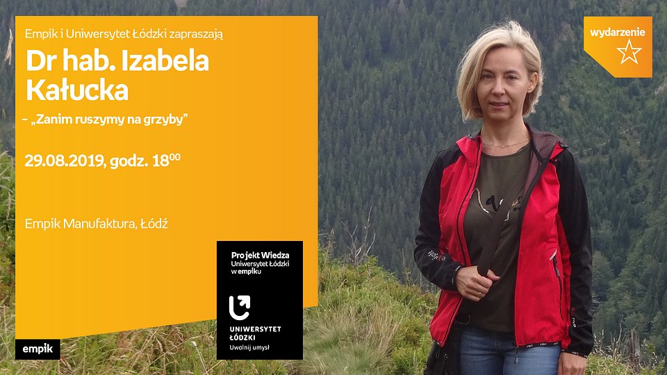 W Polsce jest znanych kilkaset gatunków grzybów uznawanych za jadalne - wśród nich około 80 gatunków ma wysokie walory kulinarne. Zwykle zbiera się jednak kilka gatunków powszechnie znanych i dość łatwo rozpoznawalnych, np. borowiki, podgrzybki, kurki, maślaki i koźlarze… Wszystkim, którzy chcą podszkolić się przed jesiennymi wypadami na grzyby, polecamy spotkanie z dr hab. Izabelą Kałucką. Zapraszamy do salonu Empik w Manufakturze 29.08 (czwartek). Zaczynamy o godz. 18:00.