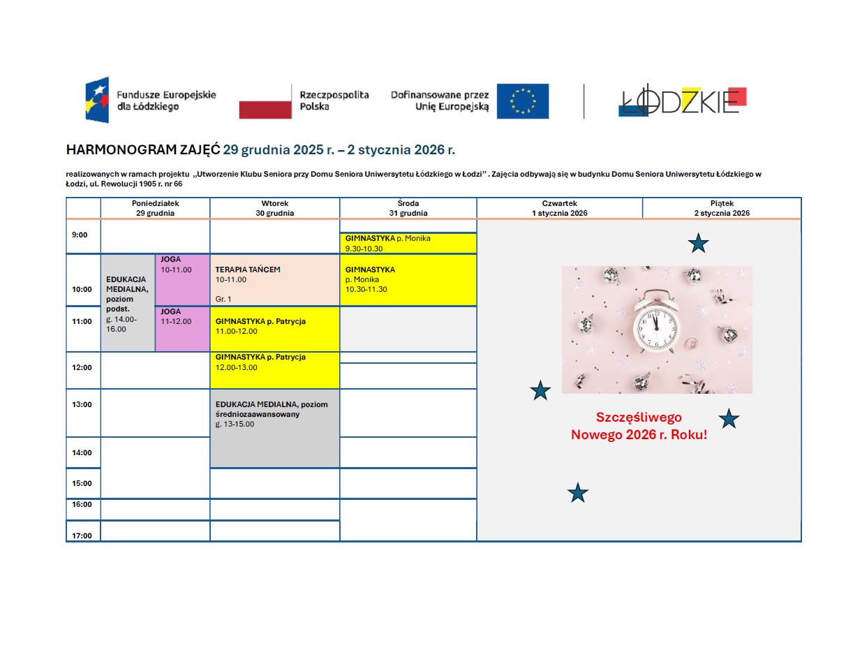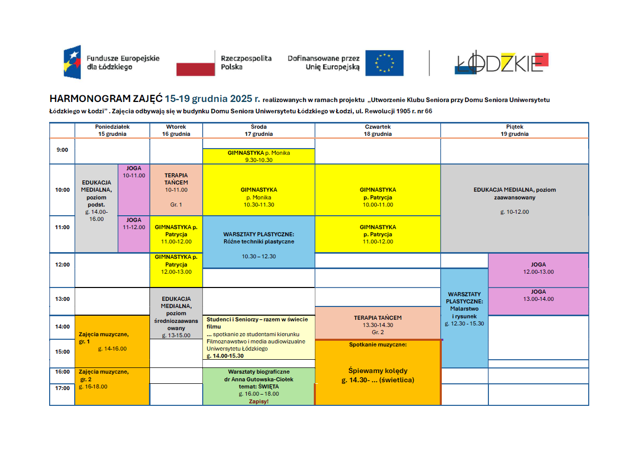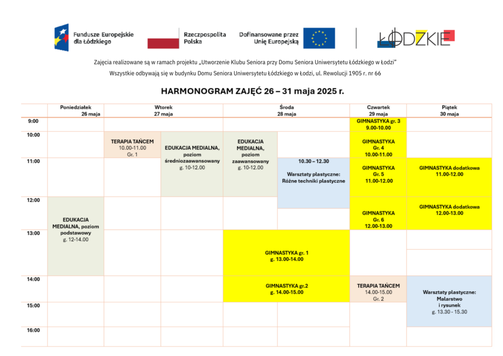 Uniwersytet Łódzki uzyskał dotację z Unii Europejskiej na projekt „Utworzenie Klubu Seniora przy Domu Seniora Uniwersytetu Łódzkiego w Łodzi” nr FELD.07.09-IP.01-0064/24-00