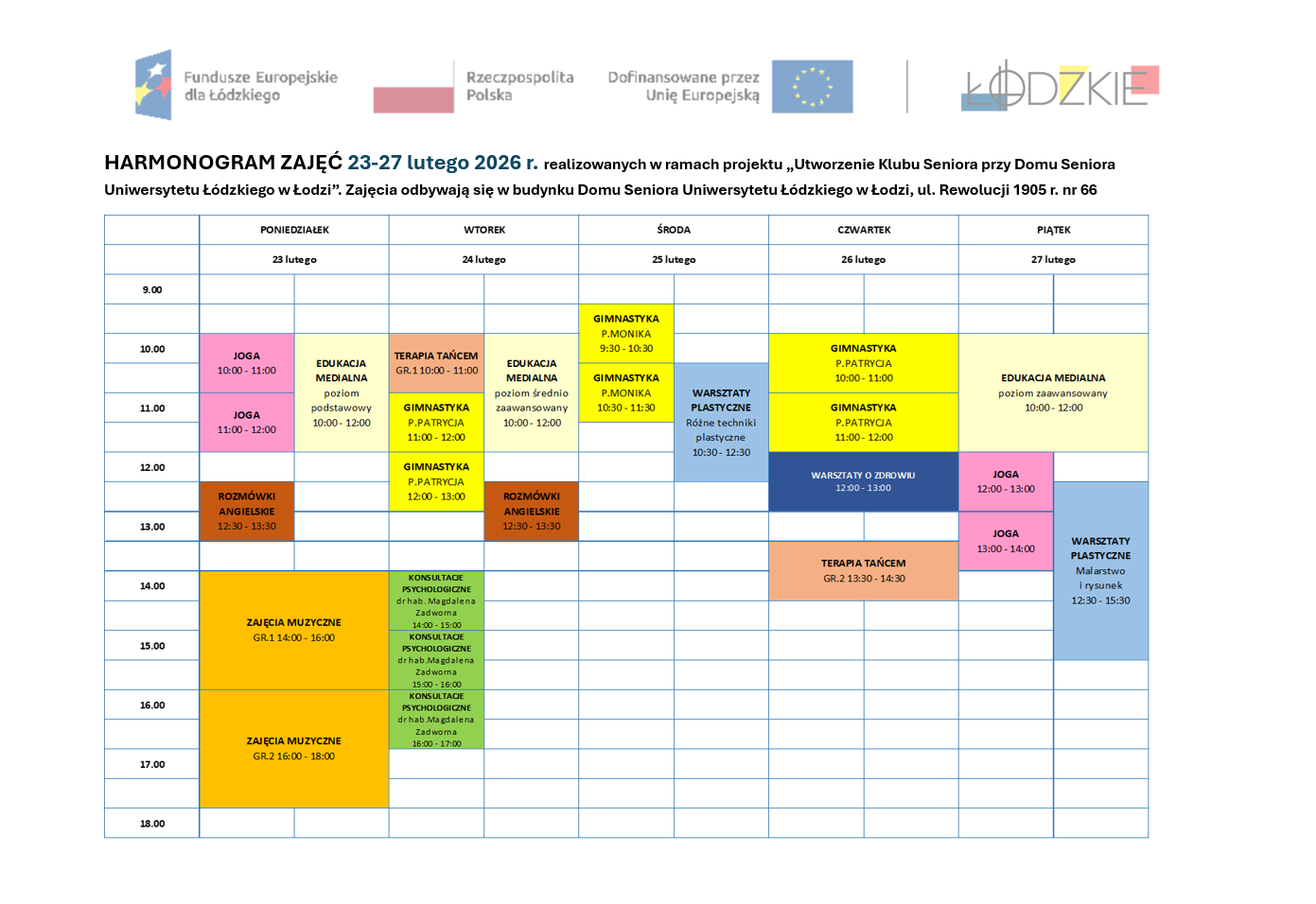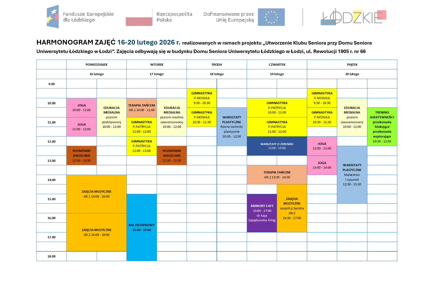 Zajęcia w ramach projektu "Utworzenie Klubu Seniora przy Domu Seniora Uniwersytetu Łódzkiego" odbywają się w budynkach "A" i "B".