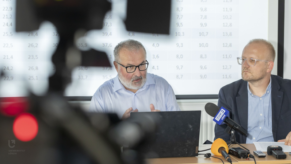 Press briefing of Prof. Szukalski and Dr GońdaProf. Piotr Szukalski and Dr Marcin Gońda (on the right) are telling the journalists about the demographic future of the Lodz Voivodeship