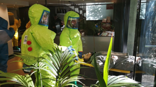 The simulation presented a situation in which a dangerous chemical substance is released from a backpack left outside the guest room during a VIP's visit. The hotel staff's task was to quickly identify the threat, secure and evacuate the VIP and other people in the facility. Subsequent actions included informing the services, which, upon arrival at the scene, secured the area, conducted reconnaissance and measurements, and carried out procedures related to the evacuation and securing of the injured.