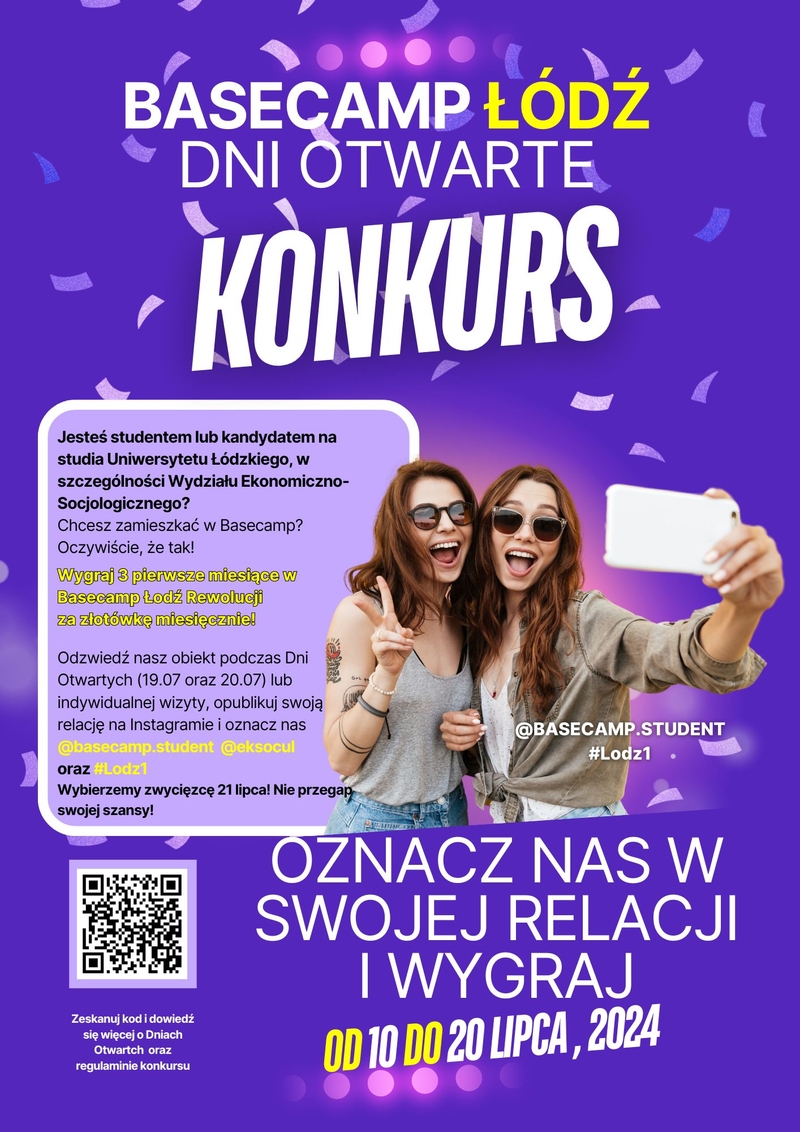 The task to be completed is very simple: visit Basecamp Revolution during the Open Days and create a report on Instagram of your visit tagging Basecamp (@basecamp.student) and our Faculty (@eksocul) and #Lodz1. The competition will be won by the best report with correct tagging, and will be judged on creativity, originality, relevance of the content conveyed and sense of humour. The results of the competition will be announced after the Open Days.