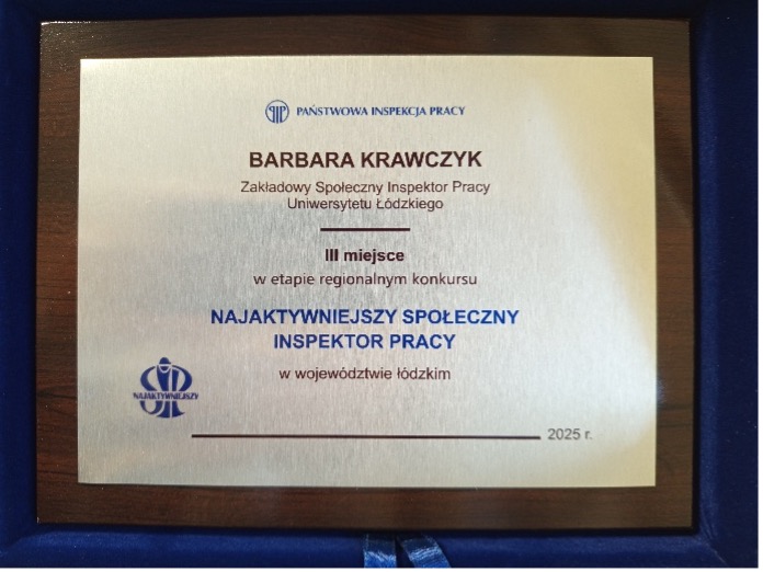 This is yet another distinction for the UniLodz Social Labour Inspector, who in last year's edition took the first place among the most active social inspectors in the Lodz Voivodeship.