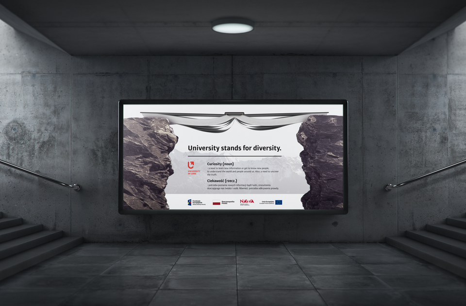 Therefore, we are making a continuous effort to internationalise our University and encourage academic staff as well as students and doctoral students from other countries to work and study at our Faculties. For years the #UniversityDiversity campaign has been conducted, the goal of which is to show our academic community as diverse, open and tolerant. A campaign that started in 2022 aiming at showing that the University of Lodz is guided in its activities by the attitude of openness towards the diversity the world offers is its continuation. You can find it not only in our social medial channels but also in urban space – on advertising poles, billboards and citylights.