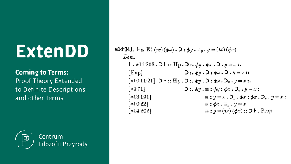 ExtenDD brings together two areas of intensive research that - surprisingly - so far have rarely come together: complex terms and proof theory. By complex terms we understand expressions that purport to denote objects like proper names, but that, unlike proper names, exhibit structure that contributes to their meaning. The most important examples of such expressions are definite descriptions. Proof theory is the mathematical study of proofs themselves. ExtenDD applies the tools of proof theory to proofs that appeal to propositions containing complex terms. A definite description is an expression of the form ‘the F’: the author of ‘On Denoting’, the author of Principia Mathematica, the present King of France. A definite descriptions aims to denote an object by virtue of a property that only it has: ‘the F’ aims to denote the sole F. The first example denotes Russell, as he was the sole author of ‘On Denoting’. Sometimes a definite description fails, because nothing or more than one thing has the property F, as in the second and third example: Principia Mathematica had two authors, Whitehead and Russell, and France is presently a republic. If a unique object has the property F, the definite description ‘the F’ is called proper; otherwise it is improper. Pride of place for the first formalisation of a theory of definite descriptions as part of a mathematical investigation belongs to Frege’s Grundgesetze der Arithmetik. But it was Russell who brought definite descriptions to prominence. Since his article ‘On Denoting’, in which Russell put forward his celebrated theory of definite descriptions, these expressions occupy a central place in philosophical research and many deep and detailed studies have been carried out in philosophical logic, epistemology, metaphysics and philosophy of language. Russell was prompted by reflections on improper definite descriptions: what do sentences like ‘The present King of France is bald’ mean? ‘The present King of France’ denotes no one, so the truth or falsity of ‘The present King of France is bald’ is not determined by whether the present King of France is bald or not. As there is no present King of France, ‘The present King of France is bald’ should not be true, as otherwise we are stating that a certain person has a certain property.