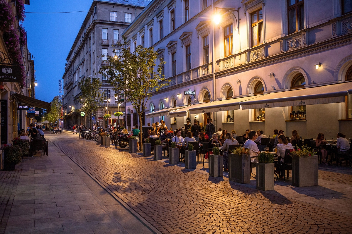 Łódzka "PIETRYNA" czyli ulica Piotrkowska - najdłuższy polski deptak stanowi wizytówkę miasta. Po godzinach, zaprasza do restauracji, kawiarni, ogródków, pubów i klubów muzycznych zlokalizowanych w kamienicach, pałacach i odrestaurowanych podwórkach przy ulicy.