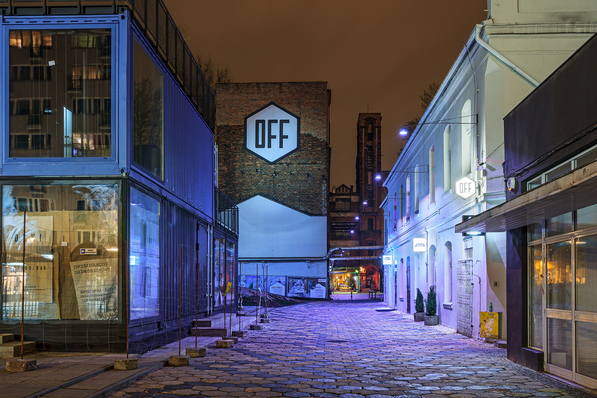 OFF PIOTRKOWSKA to miesjce gdzie powstał najmodniejszy dziś w Łodzi punkt na kulturalnej mapie miasta. To unikalny w skali ogólnopolskiej projekt, gdzie jednym miejscu swoje podwoje otworzyły kluby muzyczne, restauracje, przestrzenie wystawiennicze, sale prób, showroomy, concept store i klubokawiarnie.