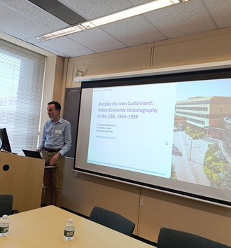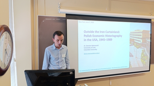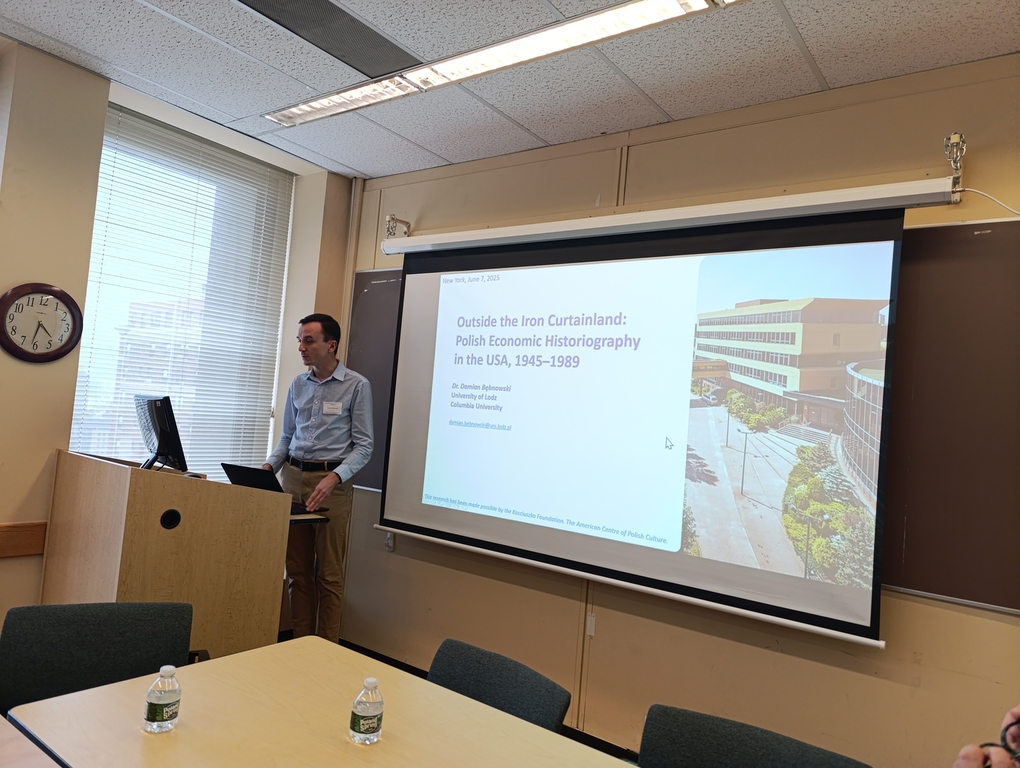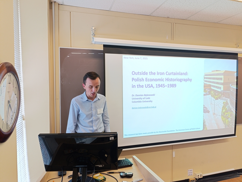 W czerwcu dr Bębnowski uczestniczył w konferencji naukowej, współorganizowanej przez Polish Institute of Arts and Sciences of America (PIASA) i Columbia University. Podczas obrad wygłosił referat, w którym przedstawił wstępne wyniki swoich badań nad wspomnianym zagadnieniem. Po II wojnie światowej ideologia komunistyczna objęła wszystkie dziedziny życia w Polsce, w tym naukę. Materializm historyczny stał się obowiązującą wykładnią m.in. dla nauk historycznych i ekonomicznych. Obiektywna dyskusja na tematy gospodarcze była w kraju ograniczona ze względu na marksistowską utopię. Alternatywne podejście reprezentowała polska nauka emigracyjna, w tym środowisko w USA. Tutaj pracowali badacze uprawiający również historię gospodarczą. Odczyt przybliżył kierunki rozwoju historii gospodarczej w kraju i na emigracji, w tym w USA. Zaprezentował ważniejsze wątki w biografiach intelektualnych polonijnych autorów "za wielką wodą". Wreszcie, przedstawił interesujące tematy, metody oraz oryginalne oceny, na które krajowi naukowcy mogli sobie pozwolić dopiero po 1989 r. Okazuje się, że polscy badacze w USA aktywnie współtworzyli anglosaską teorię ekonomii.