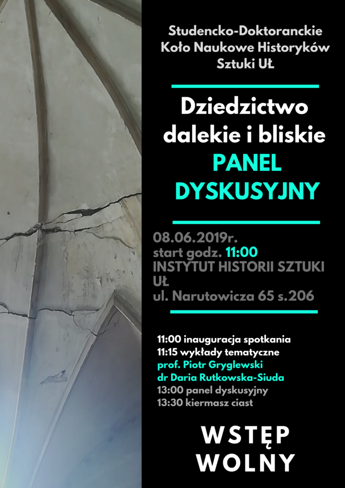 Serdecznie zapraszamy na panel dyskusyjny "Dziedzictwo dalekie i bliskie", który odbędzie się w najbliższa sobotę, 8 czerwca 2019 r., o godz. 11.00 w budynku Instytutu Historii Sztuki UŁ. Wydarzenie…