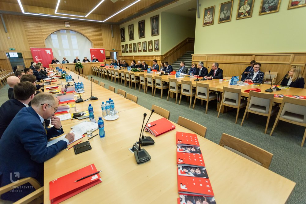 W Sali Senatu Uniwersytetu Łódzkiego spotkały się władze kilkudziesięciu polskich uczelni. Wszystkie szkoły wyższe starają się obecnie dostosować swoje struktury i systemy funkcjonowania do wymogów ustawy "Prawo o szkolnictwie wyższym i nauce". Ustawa w całości wejdzie w życie w październiku 2019 r.