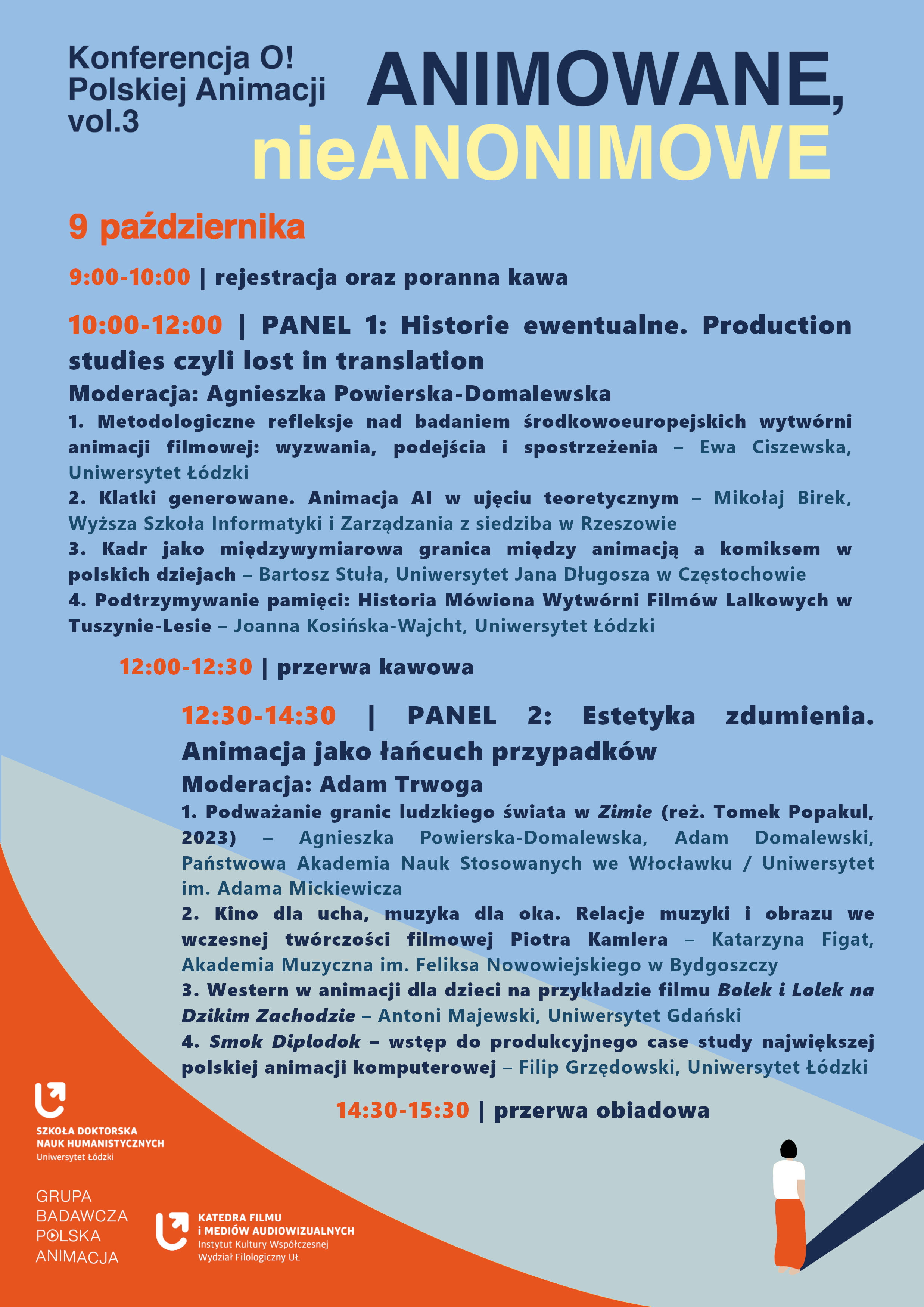 Jakie są wyzwania związane z badaniem środkowoeuropejskiej animacji filmowej? Na czym polega wdrażanie zasad zrównoważonej produkcji filmowej w filmie lalkowym? Jaka jest granica między kadrem animowanym a komiksowym? Jak prezentuje się western w animacji dla dzieci w Polsce? Jak wyglądała współpraca zagraniczna Studia Małych Form Filmowych „Se-Ma-For” z Viking Films? Jak wyglądał eksport polskiej animacji w PRL? Jak samodzielna produkcja filmu animowanego ma się do niezależności twórczej? To jedynie niektóre z kluczy, poprzez które paneliści i panelistki tegorocznej edycji konferencji spojrzą na polski film animowany w oparciu o własną optykę badawczą.