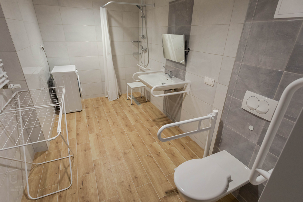 W „dziewiątce” jest obecnie 116 pokojów 2-osobowych, z łazienką i aneksem kuchennym (lodówki). Do tego dochodzą 2 pokoje 1-osobowe przystosowane dla osób z niepełnosprawnościami. Na każdym piętrze jest dostępna kuchnia. Są też: sala TV, sale do nauki, sala do ćwiczeń, pralnia, suszarnia. Akademik ma oczywiście wifi, została też zainstalowana winda.