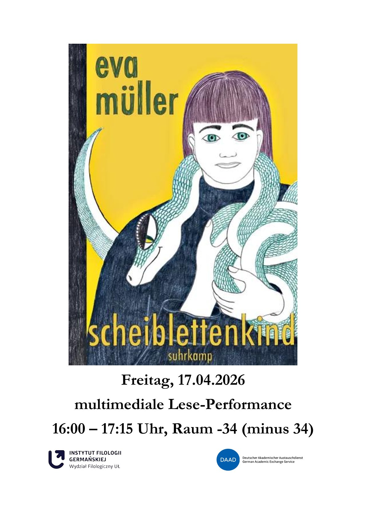 Drugim wydarzeniem będzie spotkanie autorskie z Evą Müller, które przyjmie formę multimedialnego performansu połączonego z czytaniem komiksu „Scheiblettenkind”. Ta część zaplanowana jest na godz. 16:00.