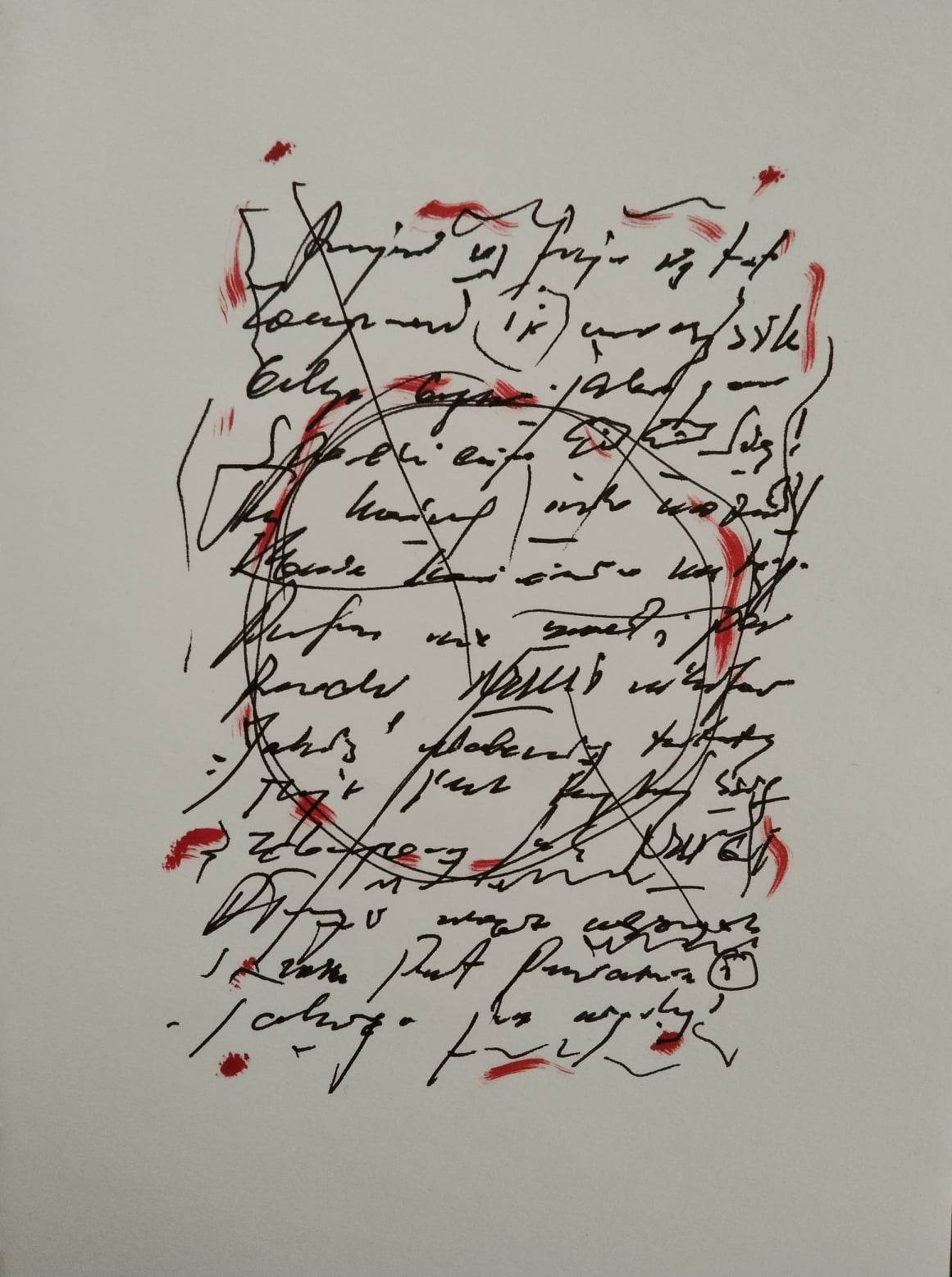 Tam, gdzie kaligrafia spotyka malarstwo, poezja otwiera się na nieskończone znaczenia, zaś malarstwo staje się jej wizualną energią. To pogranicze sztuk w swojej fascynującej materialności, z której wyłania się pismo, kolor, linia, kształt i faktura. Tam właśnie tworzy Grzegorz Wróblewski, poeta i malarz, autor prac w intermedialnym nurcie asemic writing.